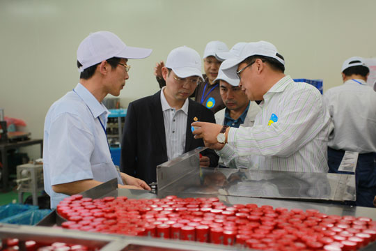 作為四特瓶蓋供應商、戰略合作伙伴,山東麗鵬股份有限公司是中國瓶蓋行業龍頭企業、國內首家上市公司。麗鵬股份將小瓶蓋作為大事業奮斗16年,目前已成長為國內最大的鋁防偽瓶蓋生產基地、最大的鋁防偽瓶蓋板集散地、最大的鋁板復合型防偽印刷基地,小小瓶蓋遠銷海內外。當參觀團隊到達山東麗鵬股份有限公司時,麗鵬股份為參觀團隊舉行了盛大的歡迎儀式。鮮花、禮炮、紅地毯、夾道歡迎的人群以及山東麗鵬股份有限公司董事長孫世堯先生熱情洋溢的歡迎辭讓所有參觀者感受到麗鵬股份的熱情好客,工作的認真高效。