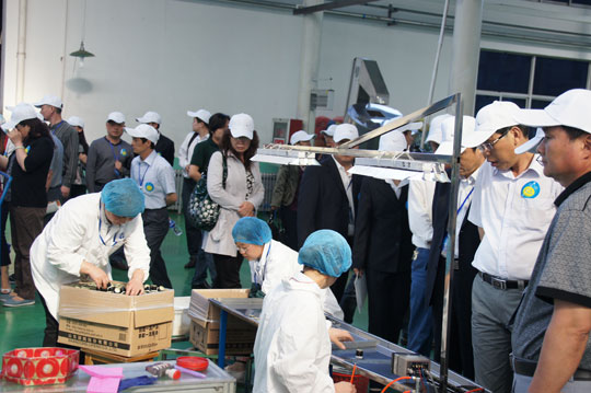 在孫世堯董事長的陪同下,參觀團隊在觀看麗鵬股份企業宣傳片后,分別至麗鵬股份各車間生產一線參觀學習。在麗鵬股份車間中,高效運轉的自動化流水生產線、忙碌有序的工作人員、完善的管理流程讓所有參觀者印象深刻;琳瑯滿目、做工精美、質量卓越的各類瓶蓋讓人們發現小產品也有大世界、大學問。當參觀團隊得知麗鵬股份在瓶蓋領域擁有近百項專利,是中國防偽瓶蓋行業標準的主要起草單位時,都對麗鵬股份以科技求發展之路表示認同。