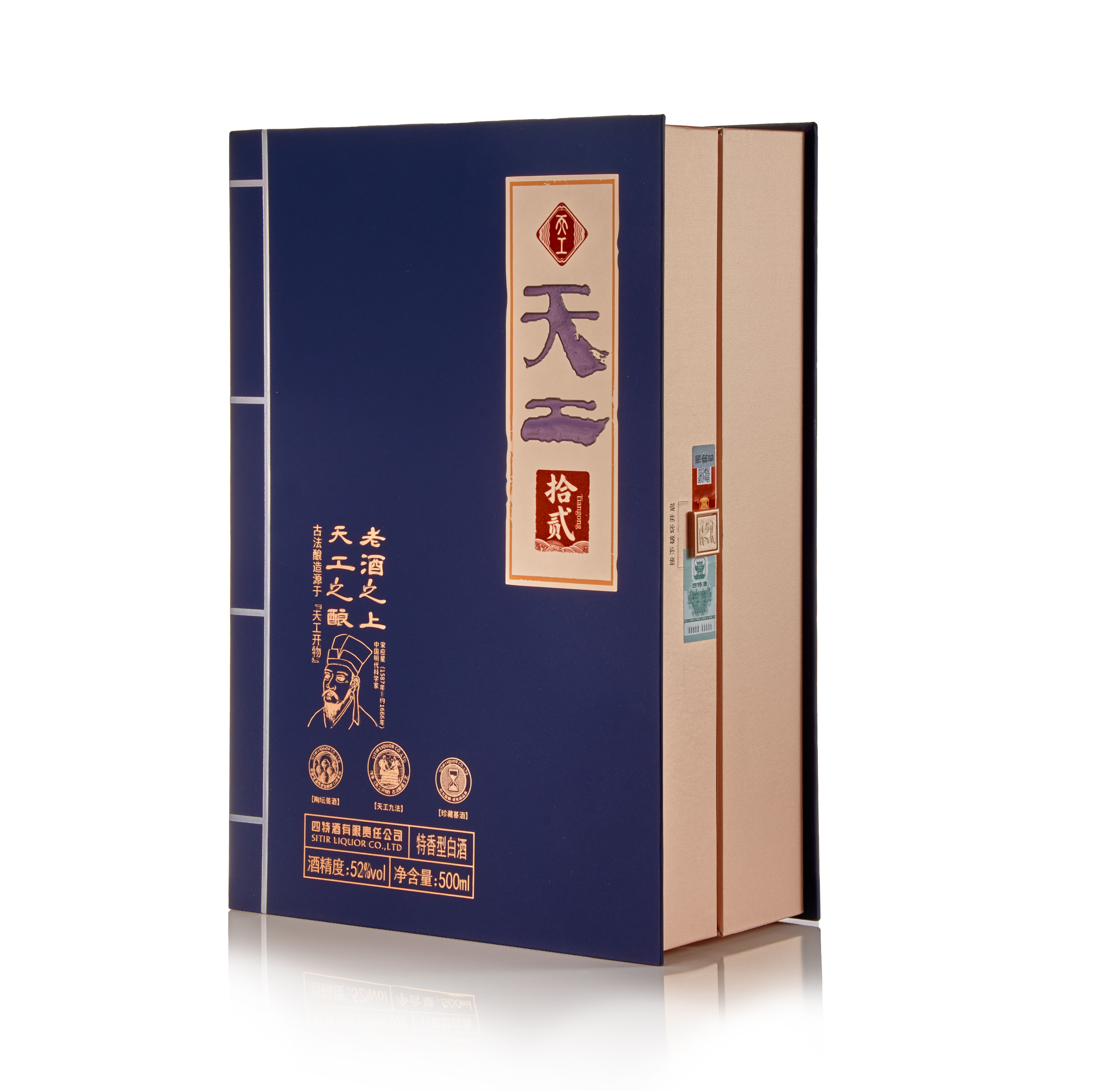天工·拾貳,以古籍《天工開(kāi)物》為設(shè)計(jì)靈感,既蘊(yùn)含復(fù)古韻味又富有文化內(nèi)涵,凝聚工匠之心及古人智慧于一體的高端年份佳釀。經(jīng)典玉蘭花器型,傳遞君子氣韻,配以玫瑰金色披肩,寓意“金蘭之交”的至誠(chéng)情誼,古靛青主色調(diào),深藏“青出于藍(lán)”哲思,顯大家風(fēng)范。酒體色澤微黃透明,聞香典雅舒適,入口綿甜甘潤(rùn),醇厚細(xì)膩、香味諧調(diào)、回甜凈爽、余味悠長(zhǎng)、特香風(fēng)格典型。